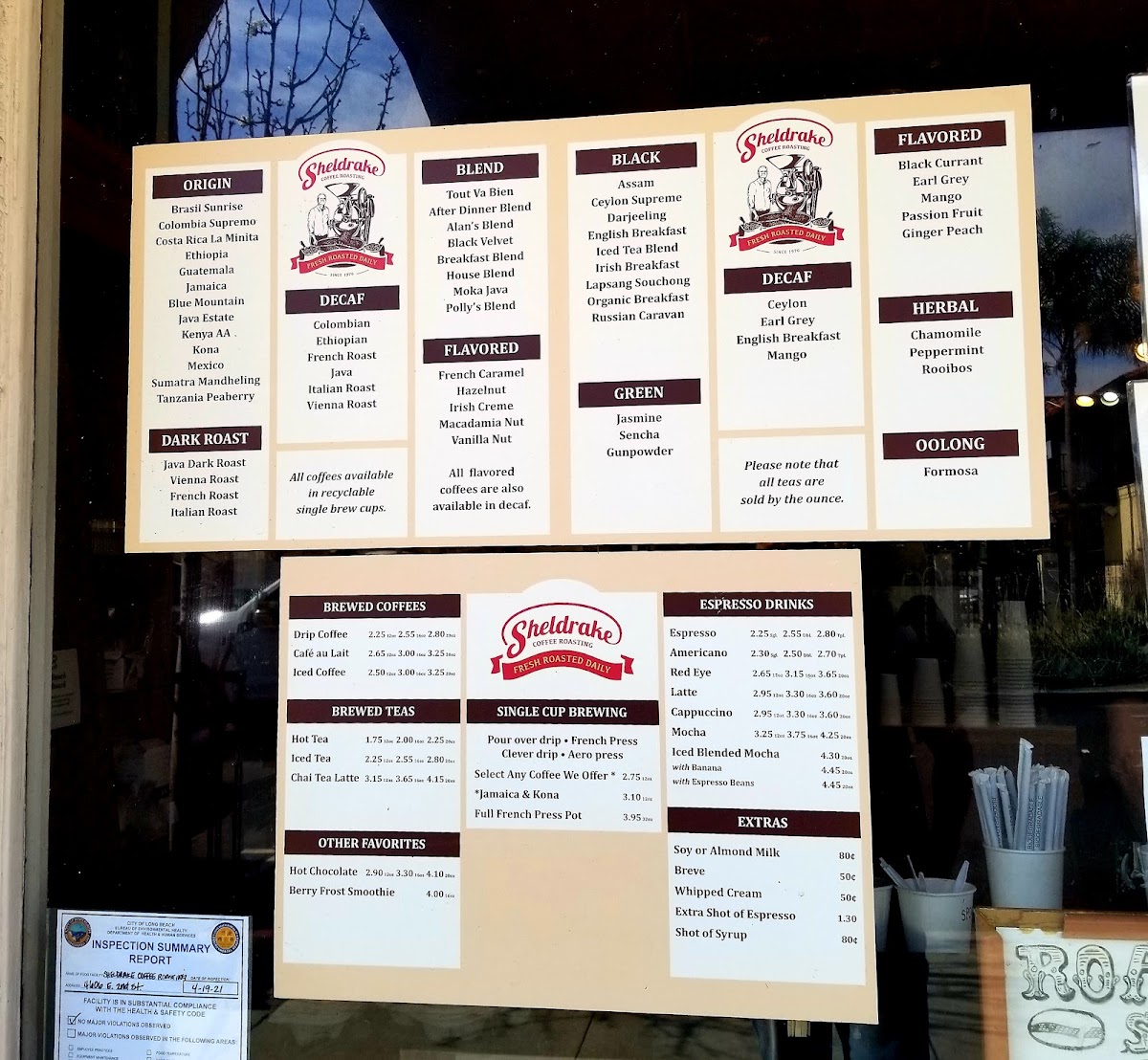 Sheldrake Coffee Roasting Menu (Update 2025)